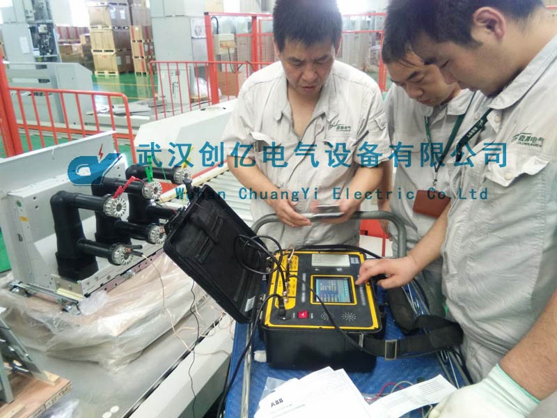 我司技術人員到達現場后,首先使用CYKC-6A對客戶已有的VD4開關進行試驗。先詳細演示了其接線的過程,避免在接線問題可能會導致的儀器損壞的問題。然后進行實際操作演示。在演示過程中,主要是客戶實操,我司技術人員從旁指點并講解。最終打印結果,并對試驗的結果進行分析。